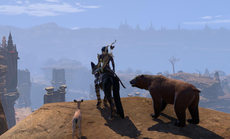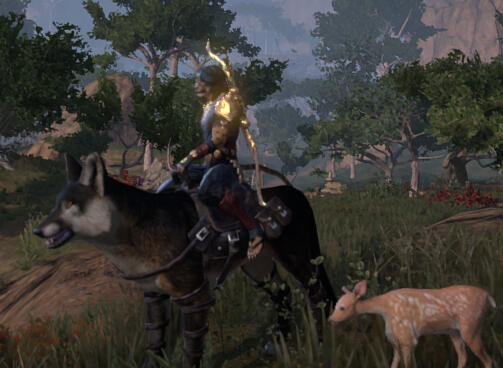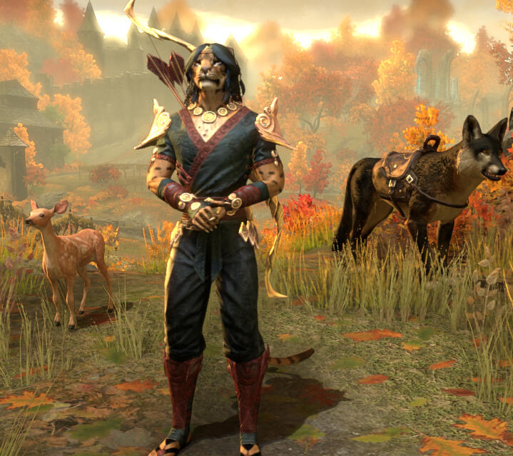 HISTORY: Amur'chant has had an affinity for animals for as long as he can remember, and believes his main purpose in life is to make a difference in theirs. This is how he ultimately got into trading, as he needed a way to support his studies and ever-growing pack of mismatched critters.His first animal was Flair, a Flint-Pelt Fox, who he found alone and near death as a pup. Flair has remained by Amur's side ever since he nursed the fox back to health. There were several animals he rescued in the years to follow, including Bristles, who was missing several teeth after a run-in with a hunter. The bear had won, but at a cost, and could now no longer hunt properly. Amur fed him, and they developed a bond. Most recently, his entourage has grown to include Dancer, a deaf fawn he discovered on one of his trade routes. While most of his animal friends remain at his sanctuary, these three follow him wherever he goes.