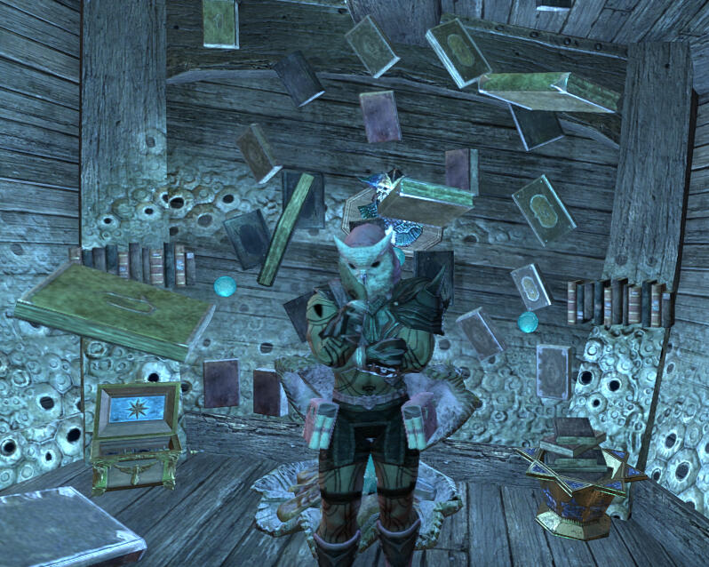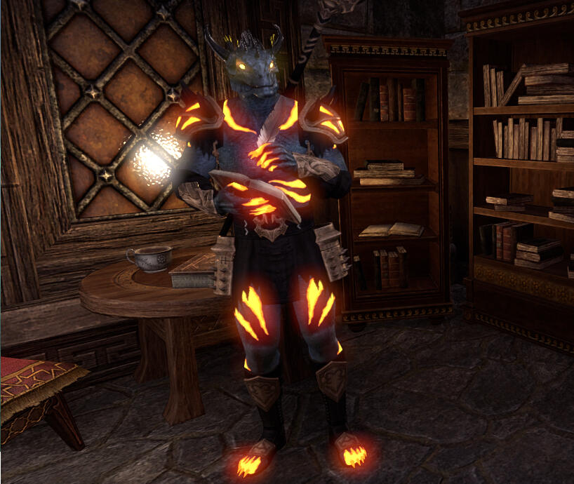 HISTORY: Originally, Leviatili was a Dremora made to serve as entertainment at Sanguine’s parties. While one of his personal dreams was to be an author, he spent most of his life pleasing revelers. He would often shapeshift into different forms for their amusement, which was something he genuinely enjoyed. During this time he also developed a complex fascination with mortals.Eventually Levi managed to gain limited traveling privileges, thus allowing him to briefly leave the endless parties as long as he would always return in time for his duties. During this free time, he would make trips to Nirn to study its residents as subjects for his writing. It was due to his affinity for transformation and adoration for mortals that caused a malicious yet powerful individual to curse him so that he was forever trapped in the body of an Argonian.The curse cannot be lifted without extremely advanced magic beyond even the capabilities of his most mystically proficient friends, and Sanguine himself is too wrapped up in his hedonism to care much about one little servant. Thus, Leviatili is stuck. Over time, he has adjusted to this change and has accepted that he cannot escape his own shape. Even so, to make up for the ability he now lacks, he works hard at crafting items to augment his form.