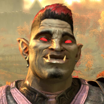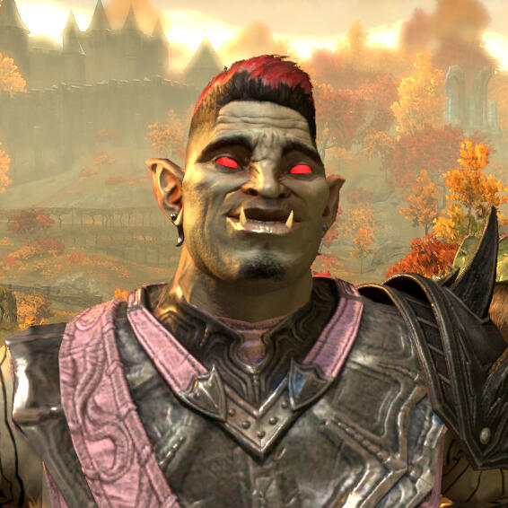 HISTORY: Kubsa originates from Craglorn, having been born into an Iron Orc community, which he claims to have been separated from at a young age during one of his first battles. The truth is that he willingly ran away in pursuit of a career in exploration and magic. He did, however, keep his pet Welwa, Wilma, who grew up to be powerful and loyal.As an independent adolescent, he had many adventures that ultimately led him to study the magic of Hermaeus Mora. The aspect of forbidden knowledge deeply intrigued him. For a time, he fell deeper and deeper into the allure of Mora's mysteries. Eventually, it overtook his life so much that he nearly died in his devotion to uncovering the esoteric. His near death experience put things into perspective, and he decided to shift into a different job.From then on, he began to work as a courier for various organizations. In his travels he also took time to work on illustrations, primarily as a hobby, but occasionally on commission. Additionally, he started acting as a freelance cartographer, using his skills to find or hide treasure troves. He has adopted two baby echalettes and an Orcrest jerboa. Kubsa lives in Northern Bangkorai with an Orc from Wrothgar, his longtime friend Yongam.