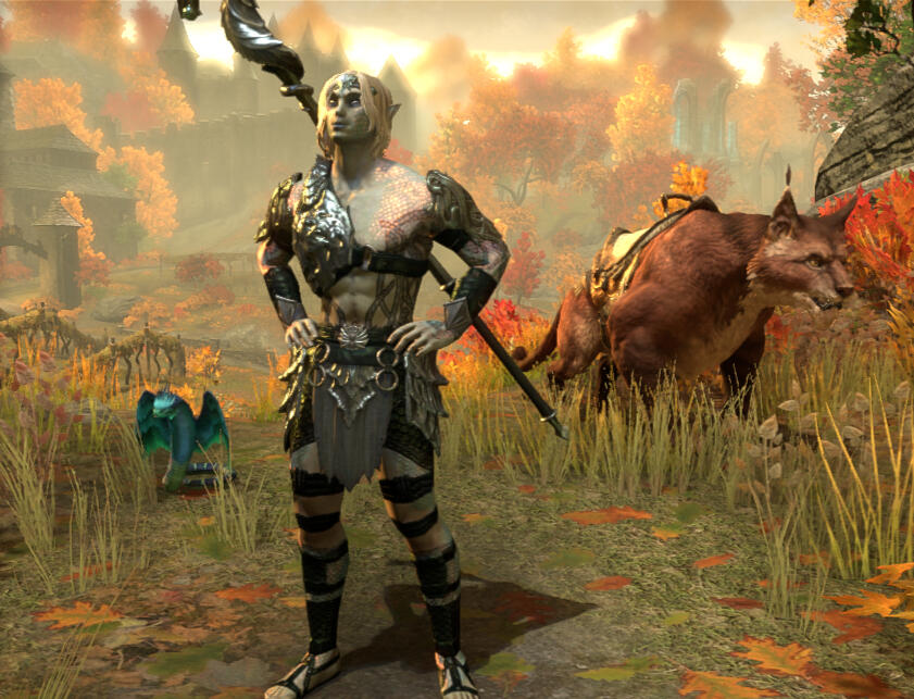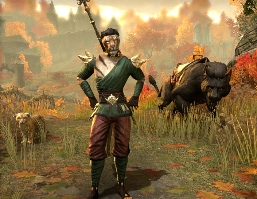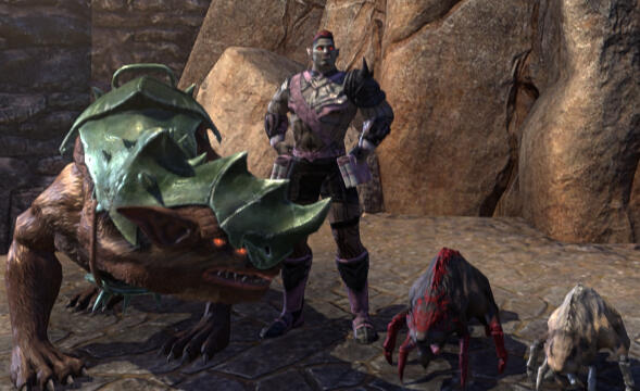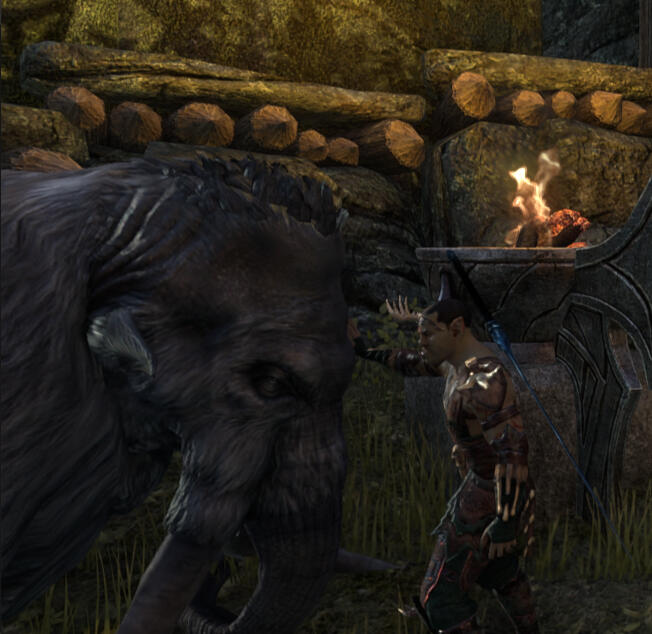 PRESENT DAY: The ever-friendly wandering pedlar, Amur'chant, takes his services all across Tamriel. His days are spent traveling, trading, and advocating for animals. But he always spares time for social fun, aiming to make new connections wherever he goes.While he makes his living as a merchant, Amur also offers his veterinarian skills to those in need. He loses money on the practice, but it is worth it to him to be of help to others.In his journeys, he occasionally adopts disabled or elderly creatures, and relocates them to his sanctuary in Northern Elsweyr. The picture of peace, his sanctuary is spacious enough that many different animals can exist together in harmony. Although that is his base, it is manned by hired caretakers in his absence, as he spends much of his time on the road.
